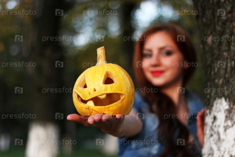 Красноволосая девушка Хэллоуинская тыква