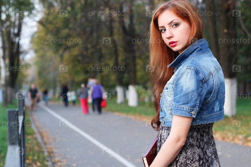 Папка с платьем рыжеволосой девушки с документами