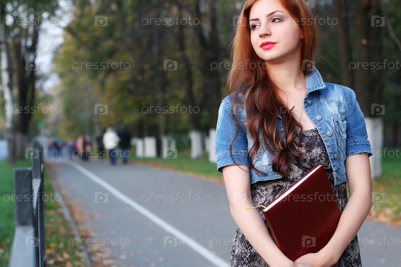 Папка с платьем рыжеволосой девушки с документами