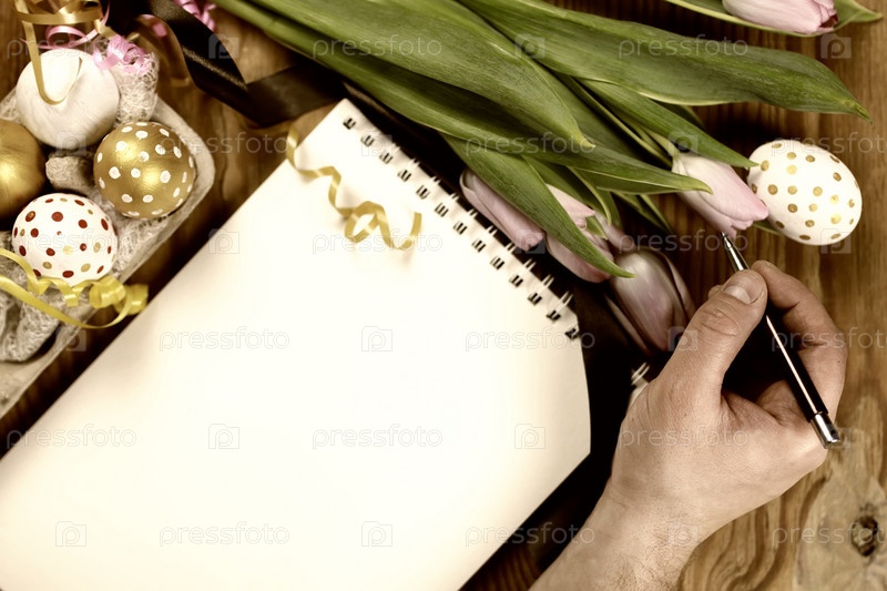 Тонированный фон пасхальные тюльпаны и яйца