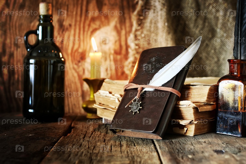 Дневник и перо с бутылкой рома