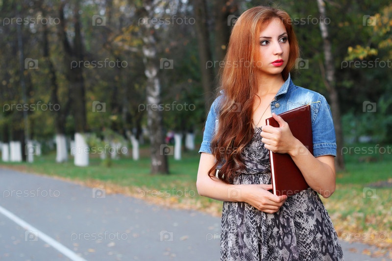 Папка с платьем рыжеволосой девушки с документами