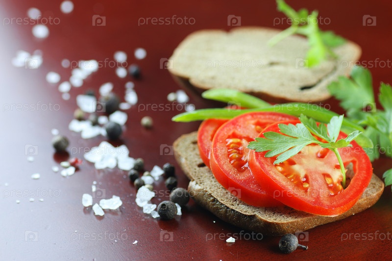 Сэндвич хлеб томатный соус зеленый здоровые овощи