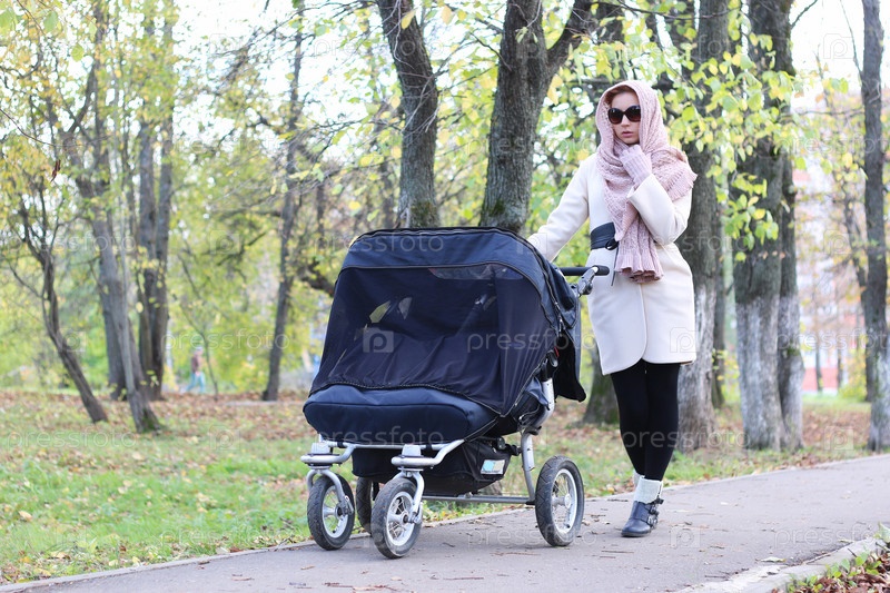 Девушка в парке с коляской