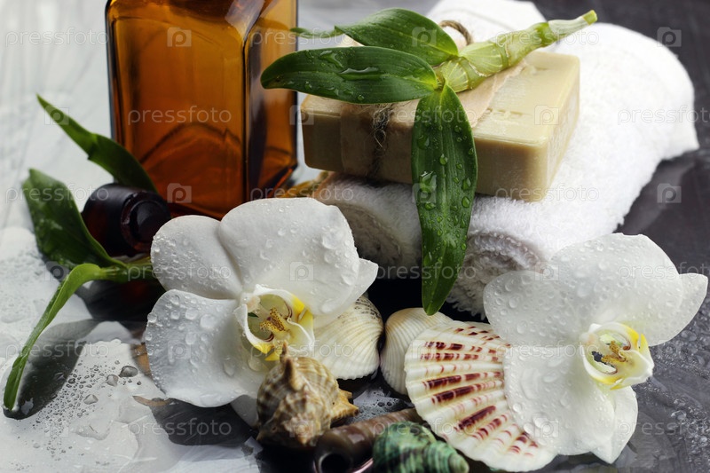 Спа-орхидея зеленое полотенце