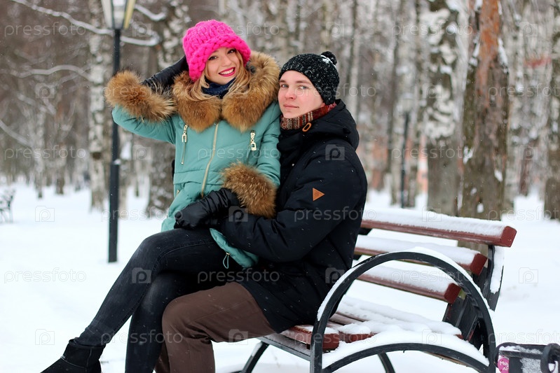 Пара влюбленных зимой