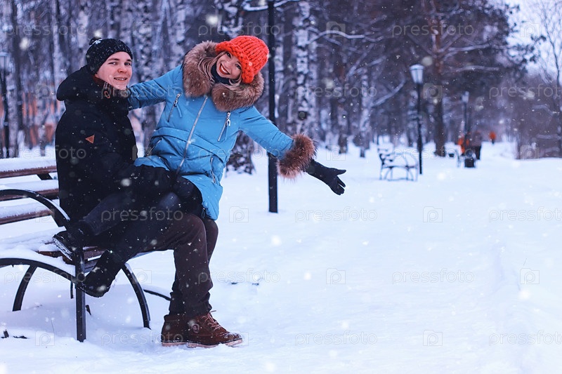 Пара любителей зимней уличной скамейки