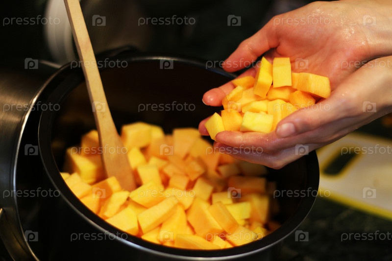 Кубики тыквы нарезанные на куски