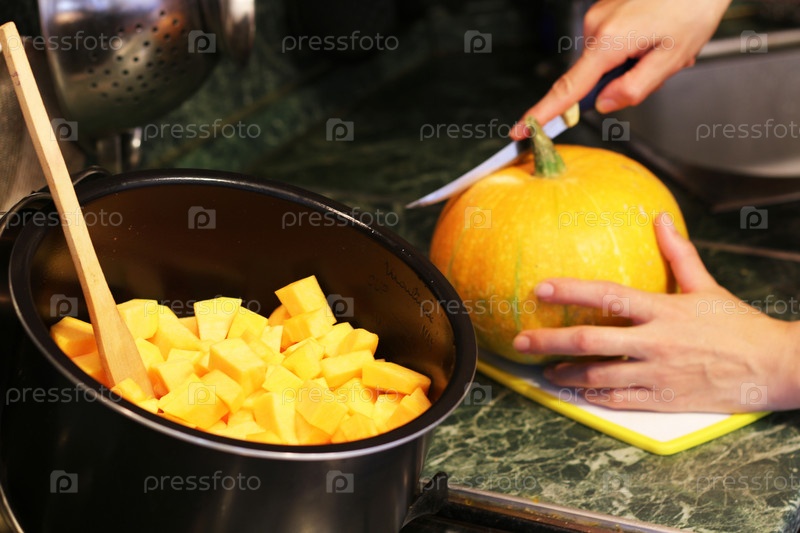 Кубики тыквы нарезанные на куски