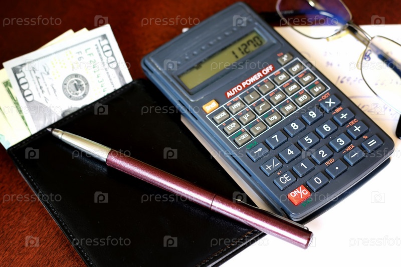Калькулятор на столе очки деньги