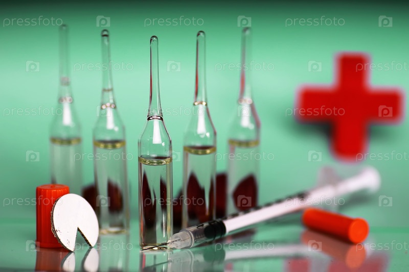 Зеленый фон ампула медицинский шприц
