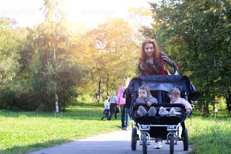 Walk women with stroller летний солнечный свет