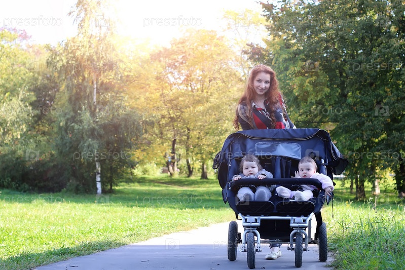 Walk women with stroller летний солнечный свет