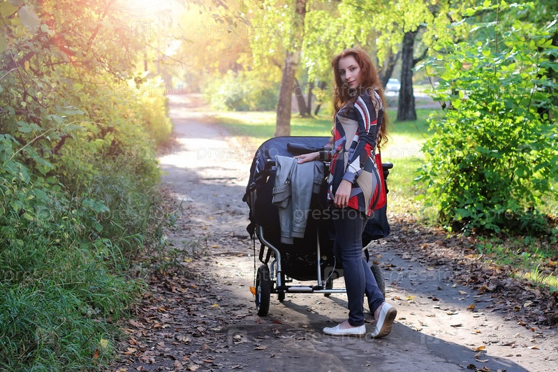 Walk women with stroller летний солнечный свет