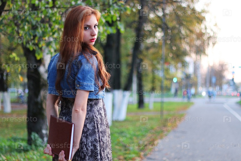 Папка с платьем рыжеволосой девушки с документами