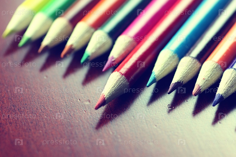 Цветные карандаши на деревянном столе