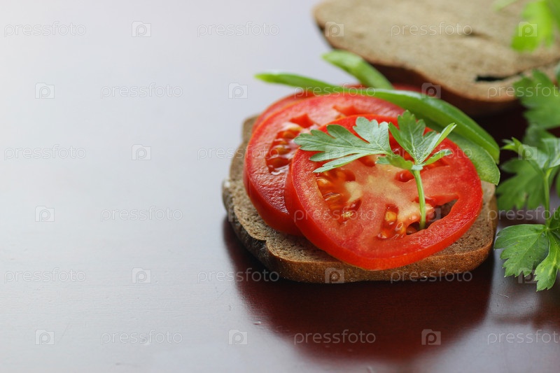 Сэндвич хлеб томатный соус зеленый здоровые овощи