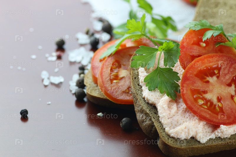 Сэндвич хлеб томатный соус зеленый здоровые овощи