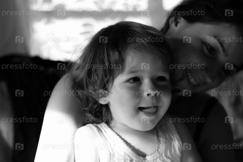 Монохромный портрет сына с матерью