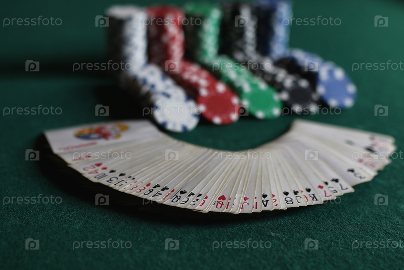 Покерные фишки и карты на ткани