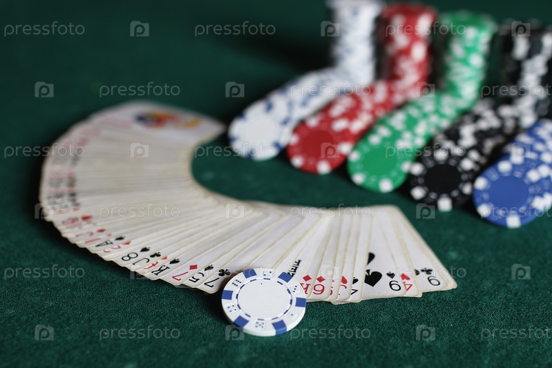 Покерные фишки и карты на ткани