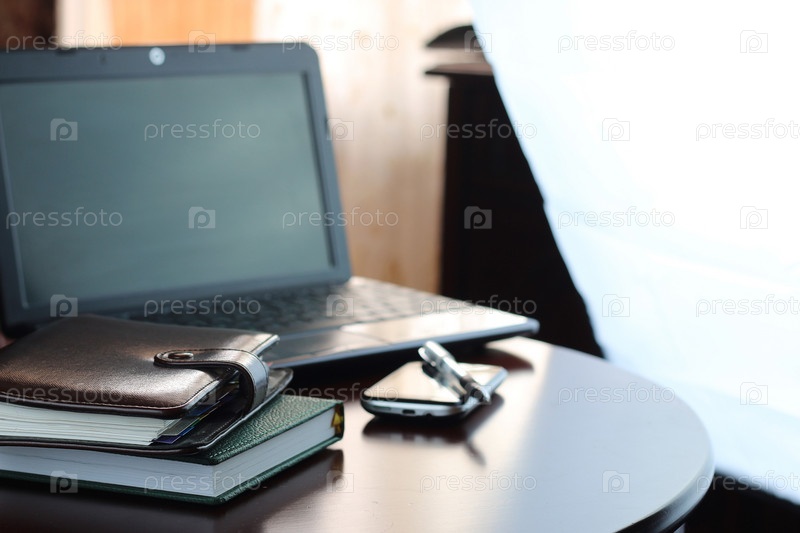 Офисный стол с компьютером и телефонным дневником