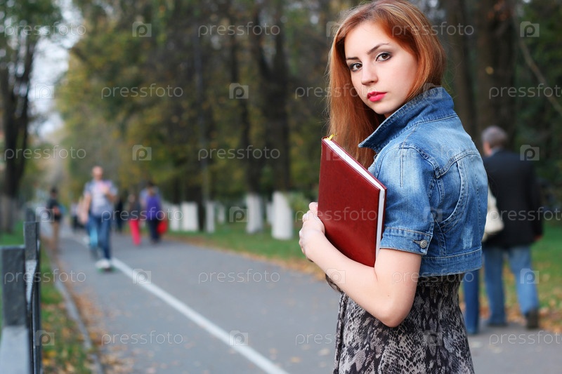 Папка с платьем рыжеволосой девушки с документами