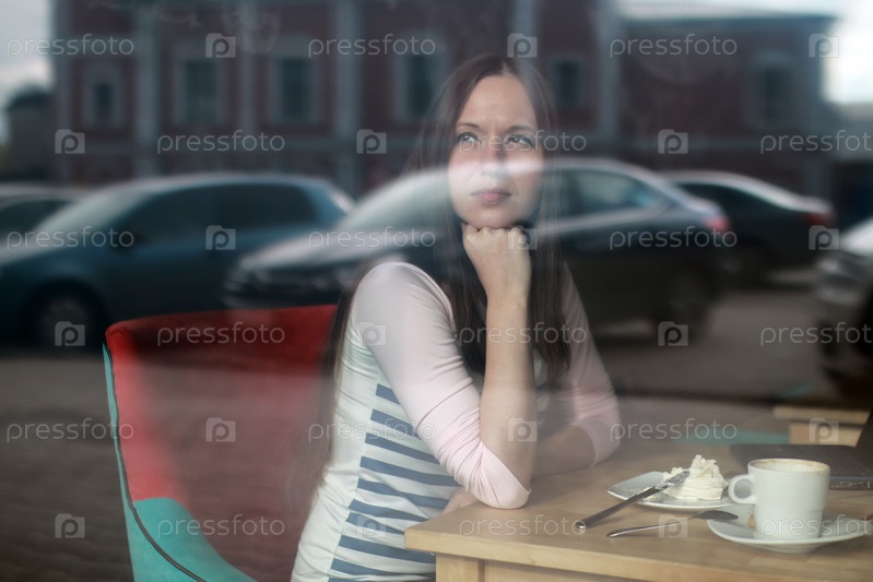 Девушка за стеклом в кафе