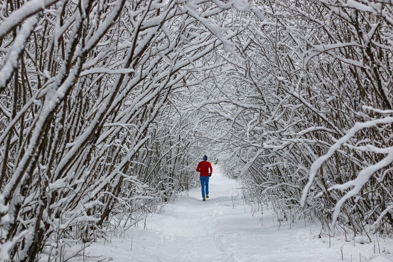 Зимний снежный спорт человек бегает в парке