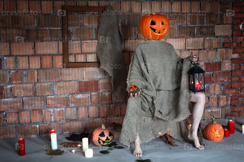 Тыквенная голова монстра ужасов в помещении