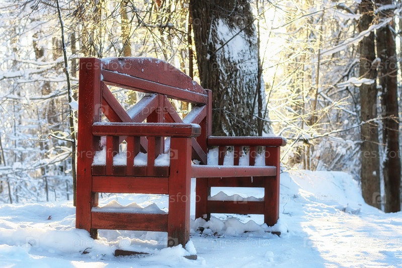 Деревянная скамейка зимой