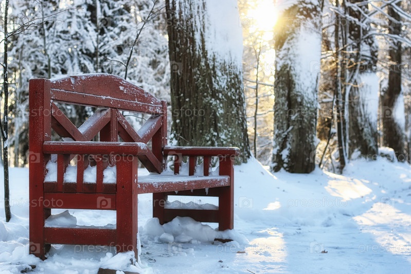 Деревянная скамейка зимой