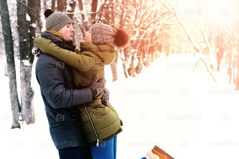 Пара влюбленных на открытом воздухе зимой