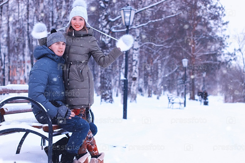 Пара любителей зимней уличной скамейки