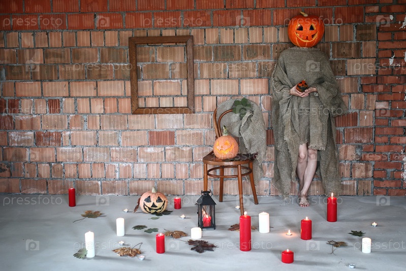 Тыквенная голова монстра ужасов в помещении