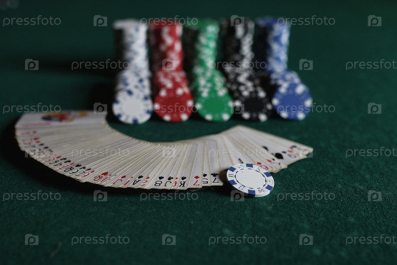 Покерные фишки и карты на ткани