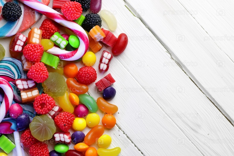 Сладкие конфеты на белом фоне