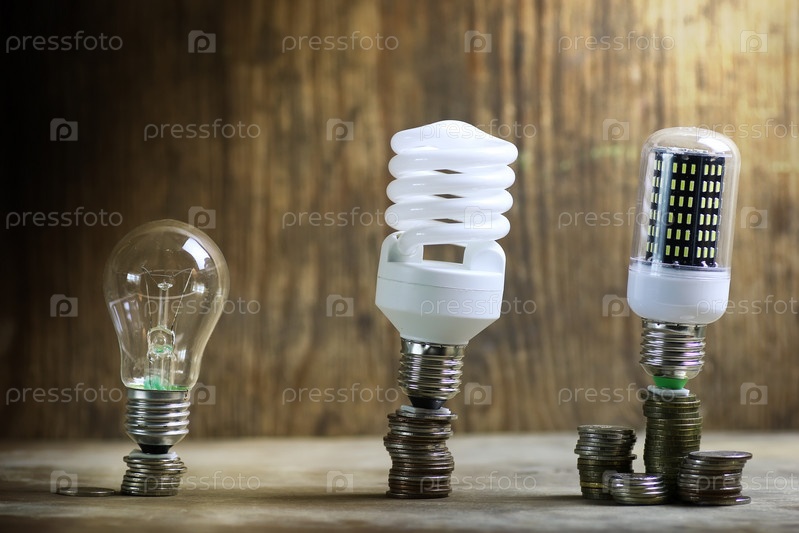 Различная лампа на концепции экономии монет