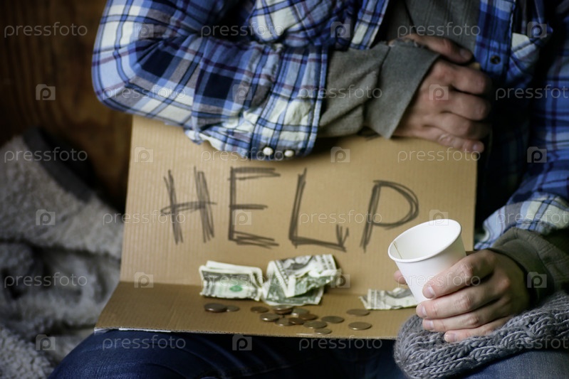 Бездомный мужчина просит помощи