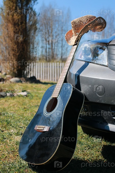 Гитара на открытом воздухе возле машины