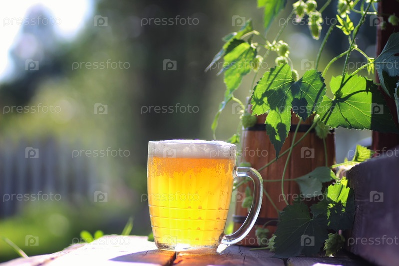 Пиво стекло деревянный хоп на открытом воздухе