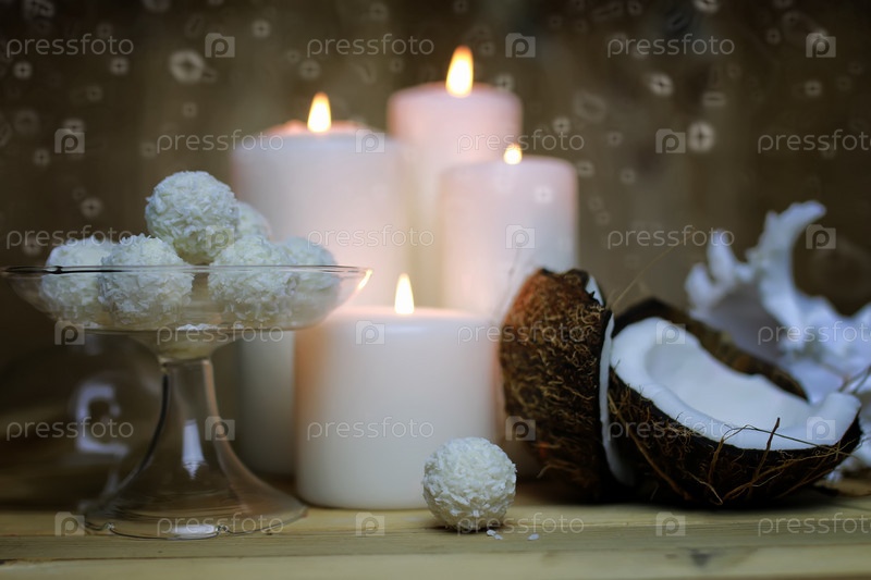 Композиция тонизирована кокосовыми конфетами