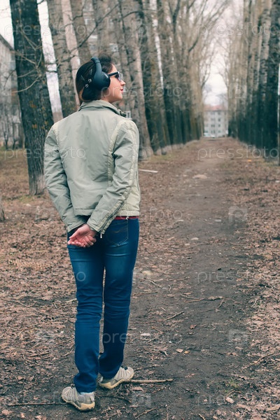Девушка в парке с наушниками