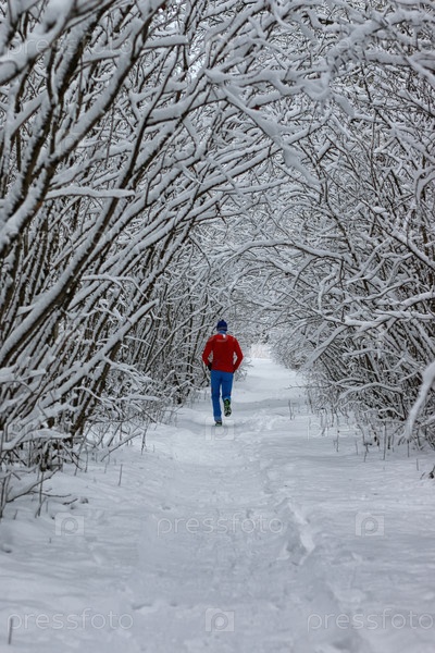 Зимний снежный спорт человек бегает в парке
