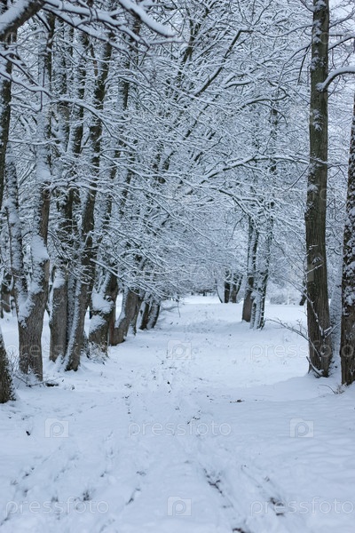 Зимний снег на деревьях в парке