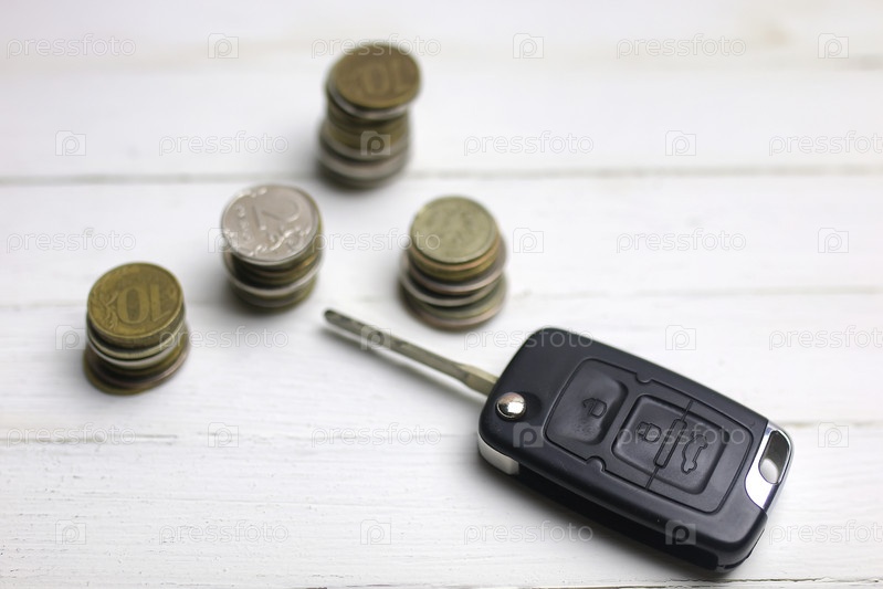 Ключи от машины и монета на фоне