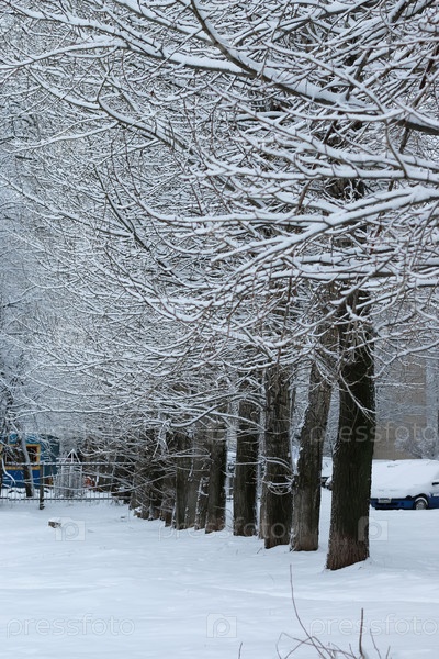 Зимний снег на ветке дерева