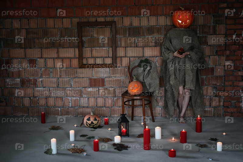 Тыквенная голова монстра ужасов в помещении