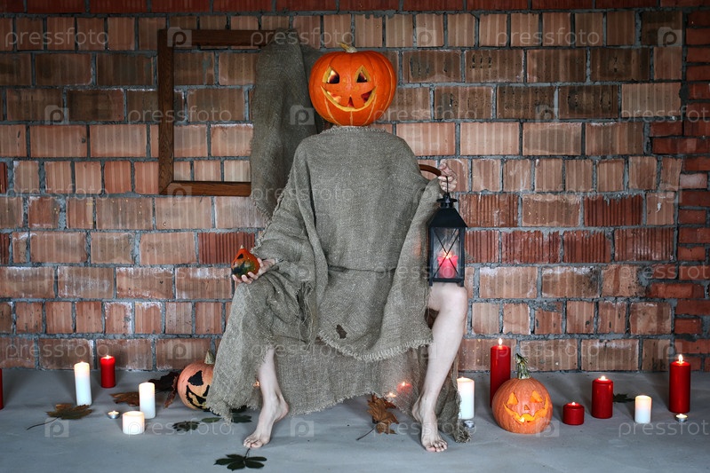 Тыквенная голова монстра ужасов в помещении
