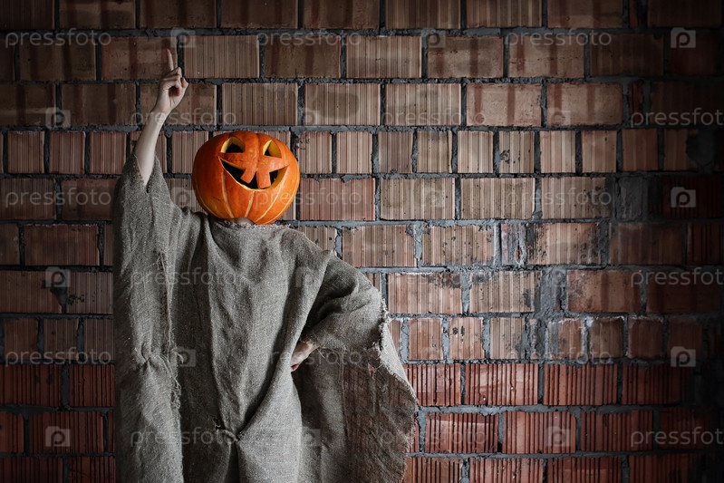Тыквенная голова чудовищного знака hand space halloween